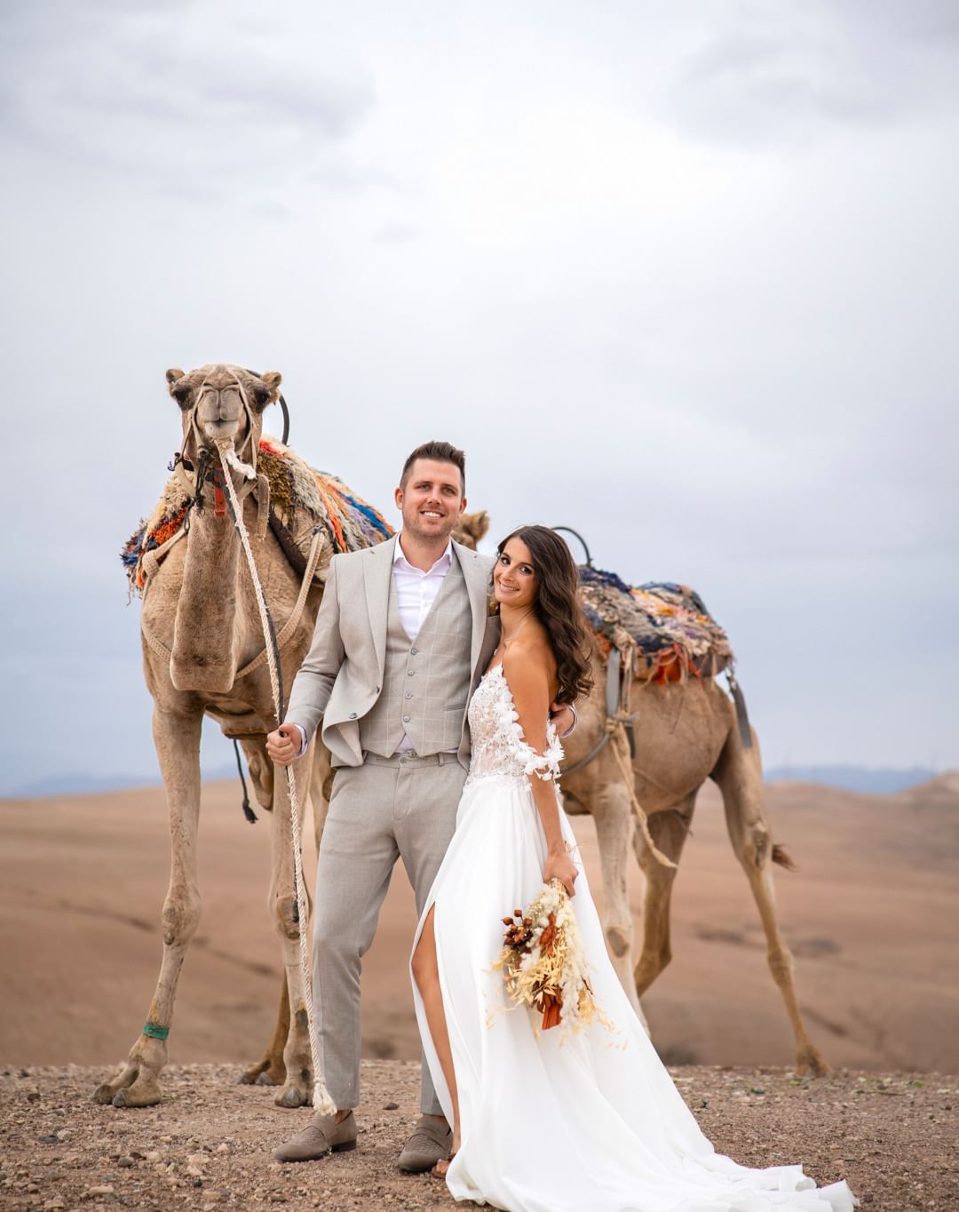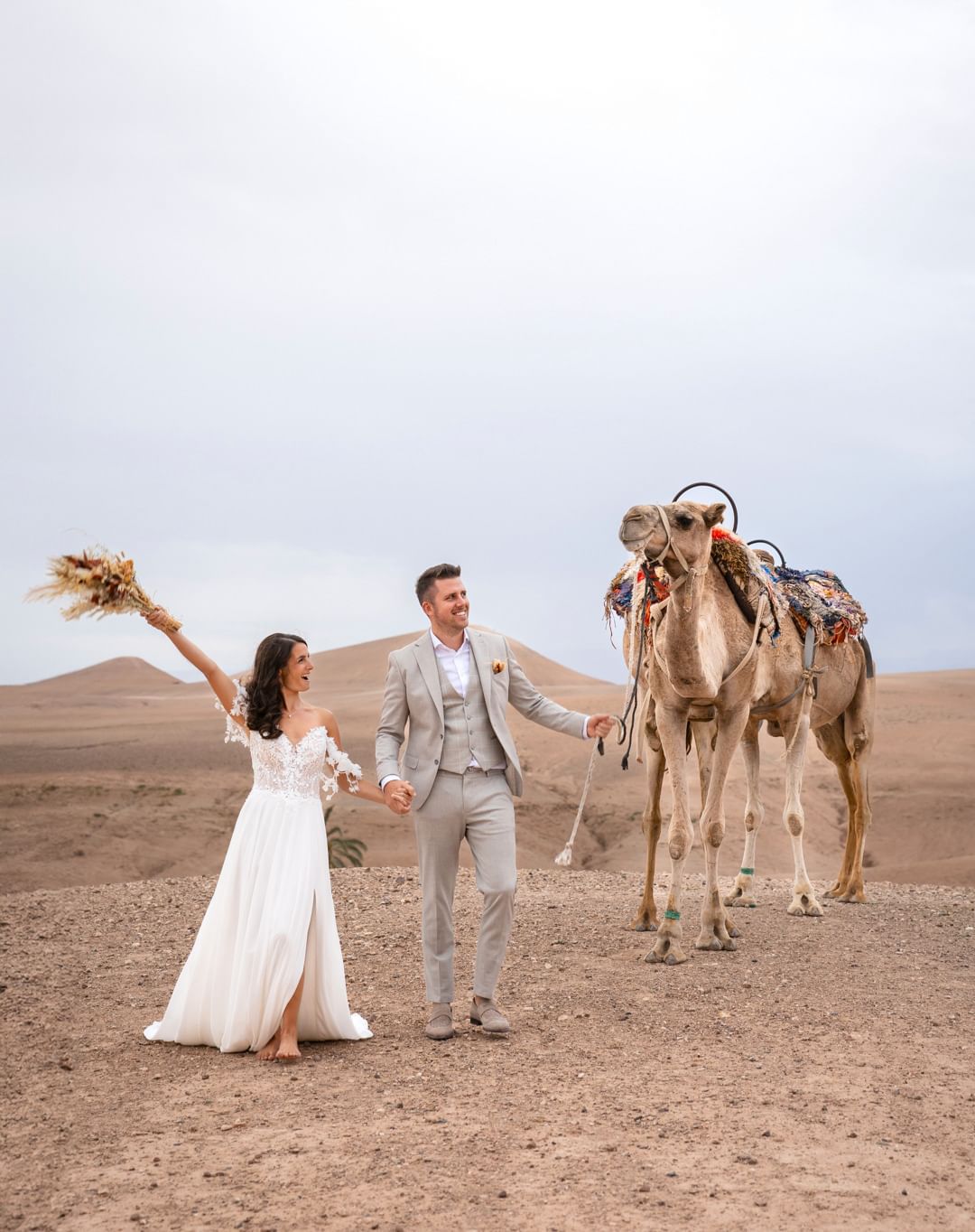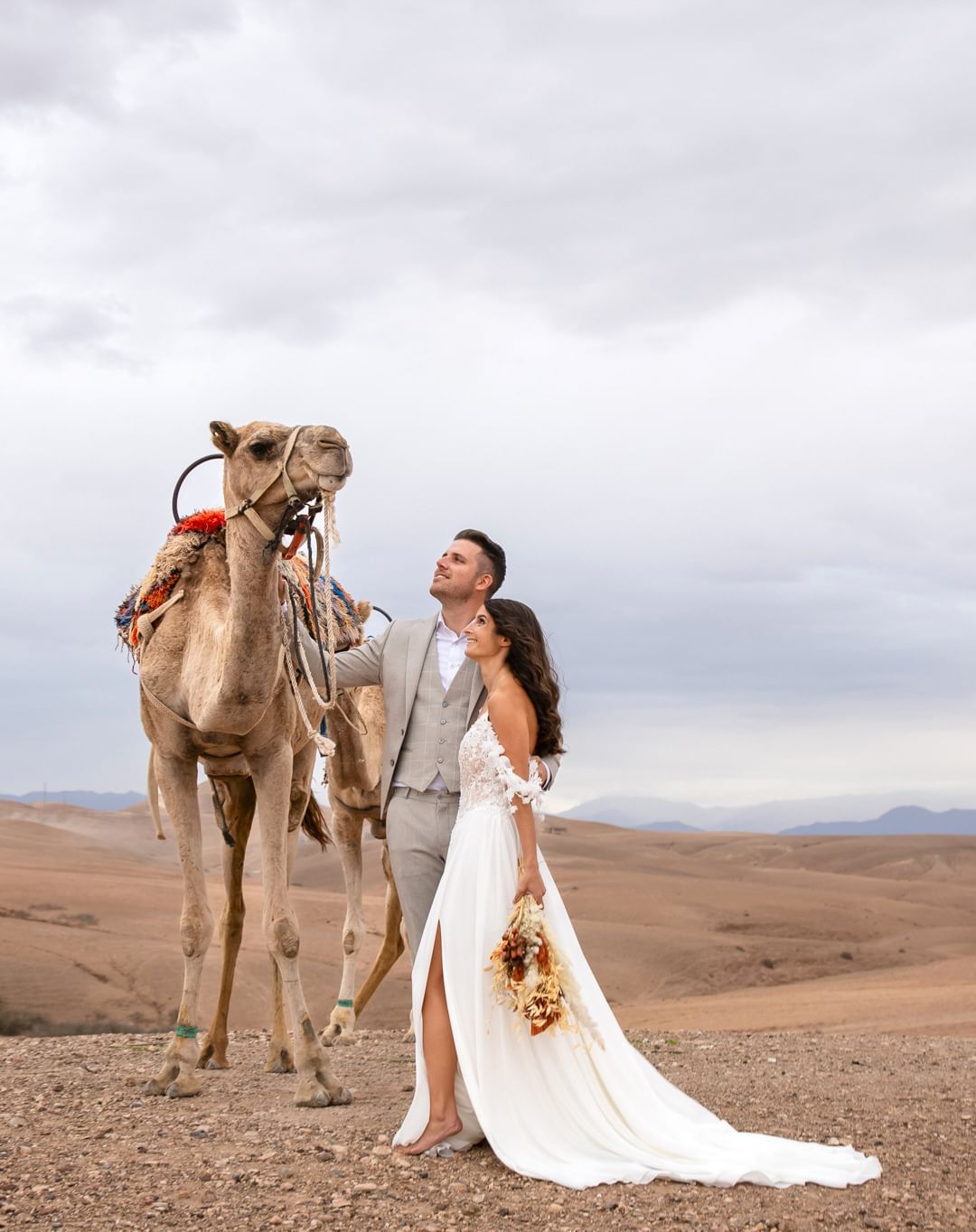 Le désert d’Agafay est situé à environ 30 kilomètres du centre de Marrakech et présente certains des paysages les plus époustouflants du Maroc. Le vaste paysage désertique offre aux couples d’innombrables possibilités de créer leur mariage parfait, y compris des tentes marocaines traditionnelles, des dîners berbères autour d’un feu de camp et même des promenades à dos de chameau !