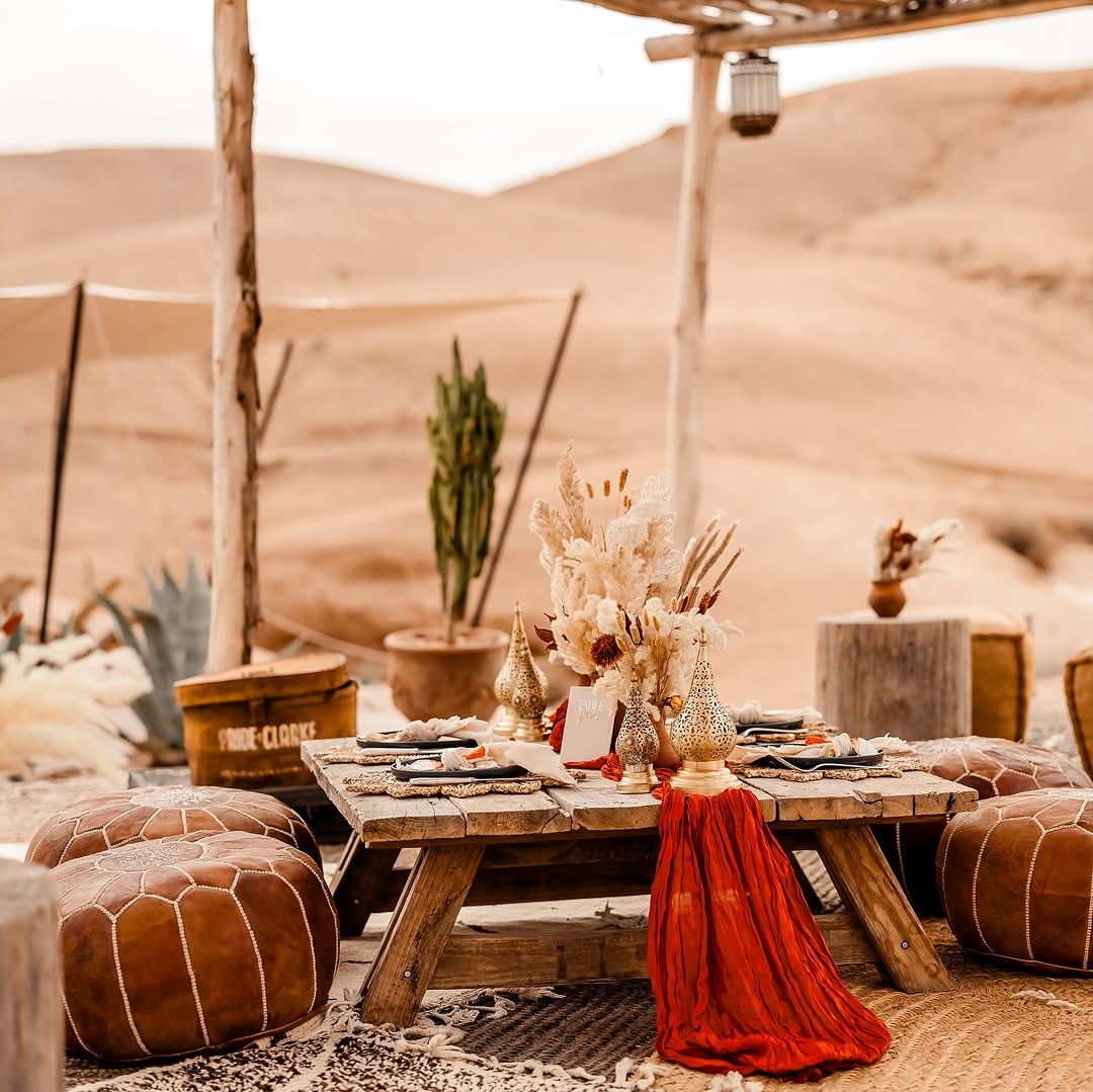 Que vous rêviez d’un mariage romantique ou d’une décoration de mariage boho chic. Le désert d’Agafay vous offre le cadre idéal pour faire de vos rêves une réalité. Contactez dès aujourd’hui SIGNATURE EVENTS pour vous accompagner à planifier votre événement sur mesure dans ce lieu magique et enchanteur.